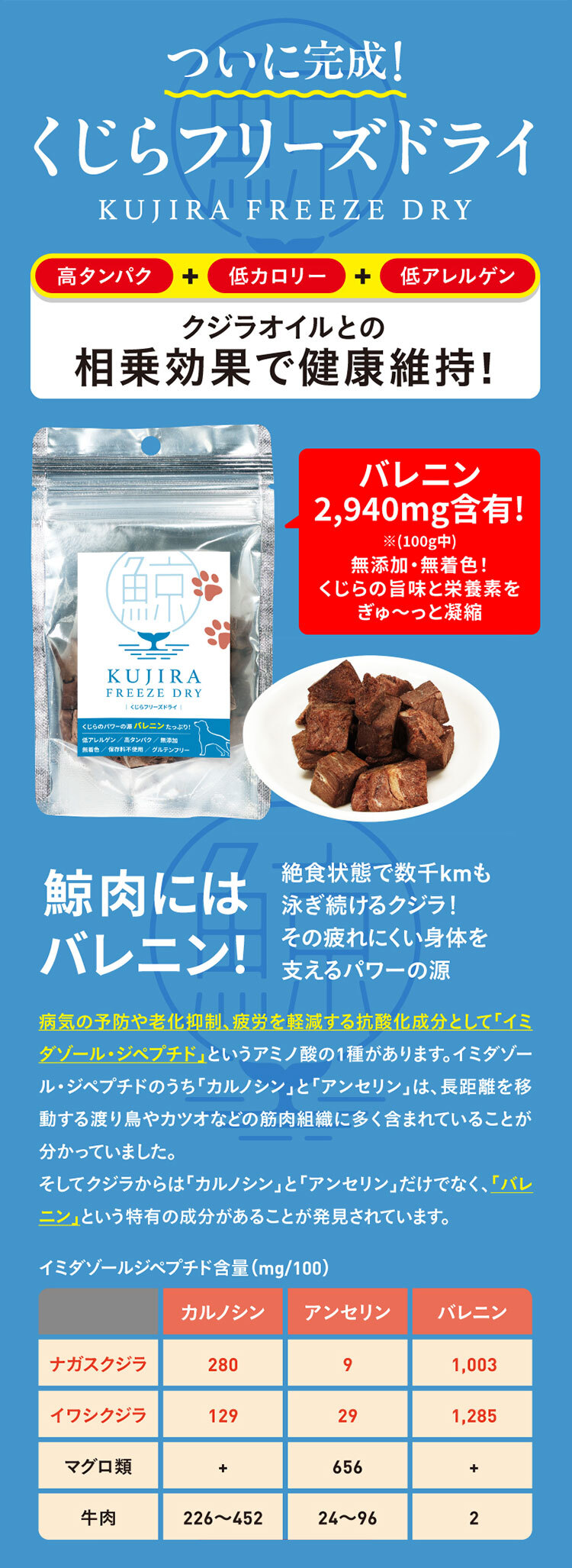 クジラフリーズドライは、厳選されたクジラ肉を使用し、真空状態でフリーズドライ製法により仕上げています。本商品は、風味をそのまま閉じ込めながら、軽やかな食感と濃厚な味わいを実現しています。食べる際には、そのままで楽しむことはもちろん、サラダやスープに加えるなど、さまざまなアレンジが可能です。